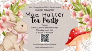 Mad Hatter Tea Party + Add to Google Calendar + iCal / Outlook export 00 days 00 hours 00 minutes 00 seconds Date Apr 16 2026 Time 5:30 pm - 7:00 pm Location Christ Lutheran Church Category Community Event Share this event